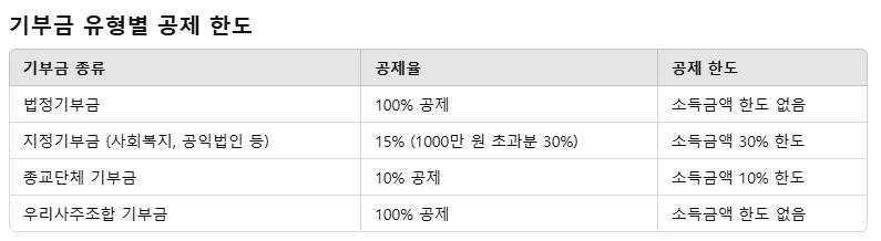 TIP: 일반적으로 사회복지단체, 공익법인 등에 기부하면 최대 30%까지 공제 가능합니다.