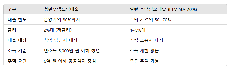 📌 청년주택드림대출은 금리가 낮고, 분양가의 80%까지 대출 가능하지만, 청약 당첨이 필수 요건이라는 점이 가장 큰 차이점입니다.